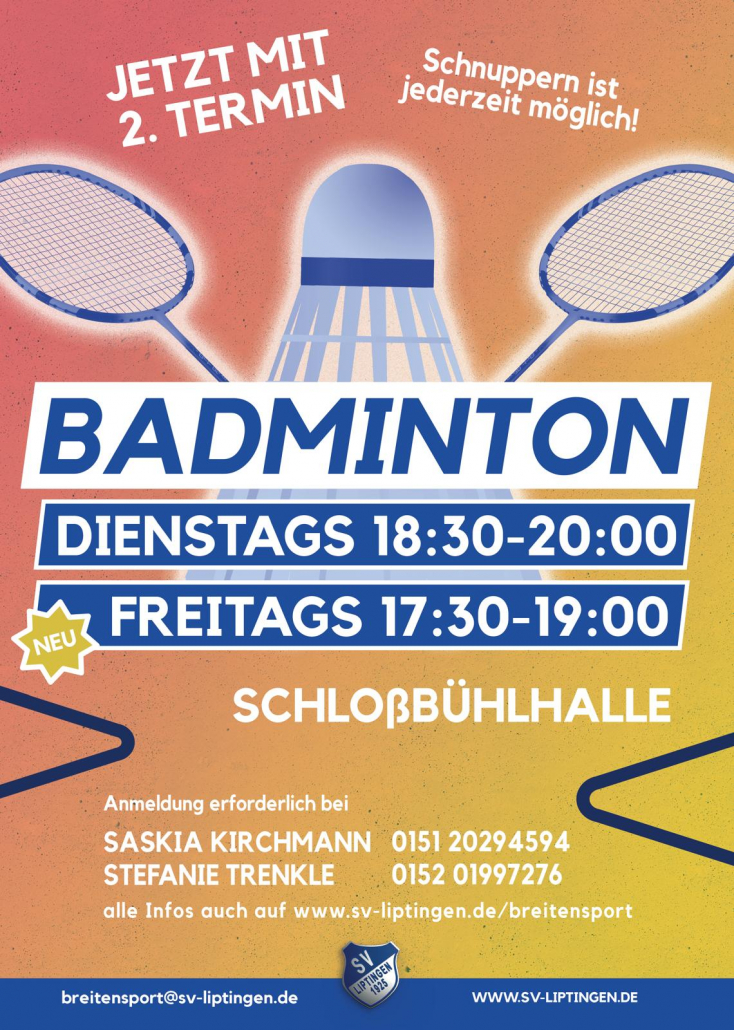 Breitensport, SVLDer SV Liptingen erweitert sein Sportangebot und freut sich, eine neue Badminton-Gruppe vorzustellen!
